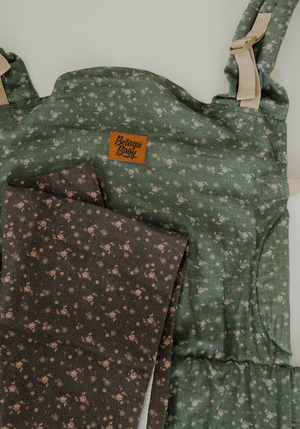 Choose between Wren (green) and Bernadette (dark) using the dropdown below. This collection is a SPECIAL collaboration with Loveheld. All fabrics are extremely soft, cushy, and smooshy. We hope you love this very special, pre-order only limited collection. These Cove Carriers are made to order and will ship at the end of January.